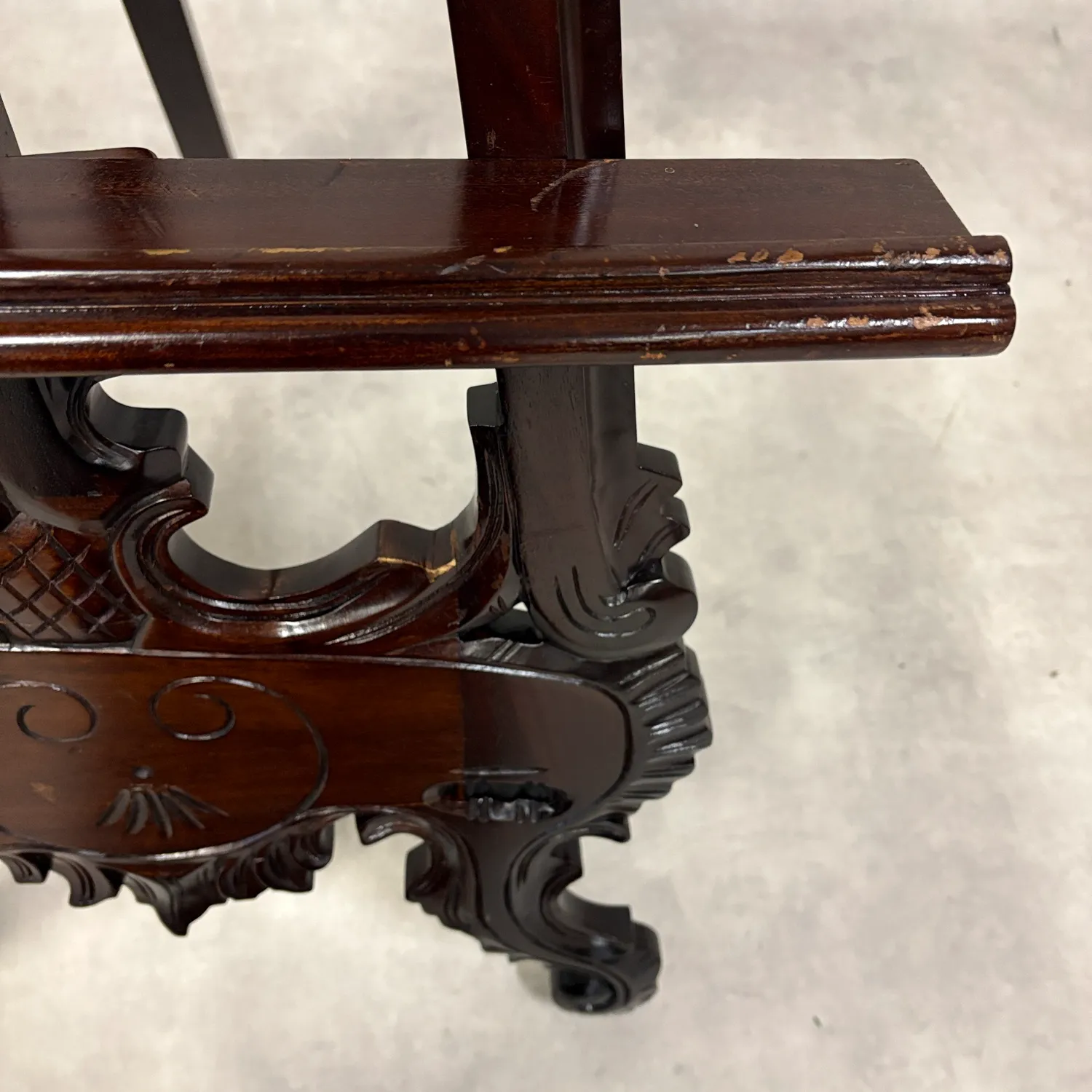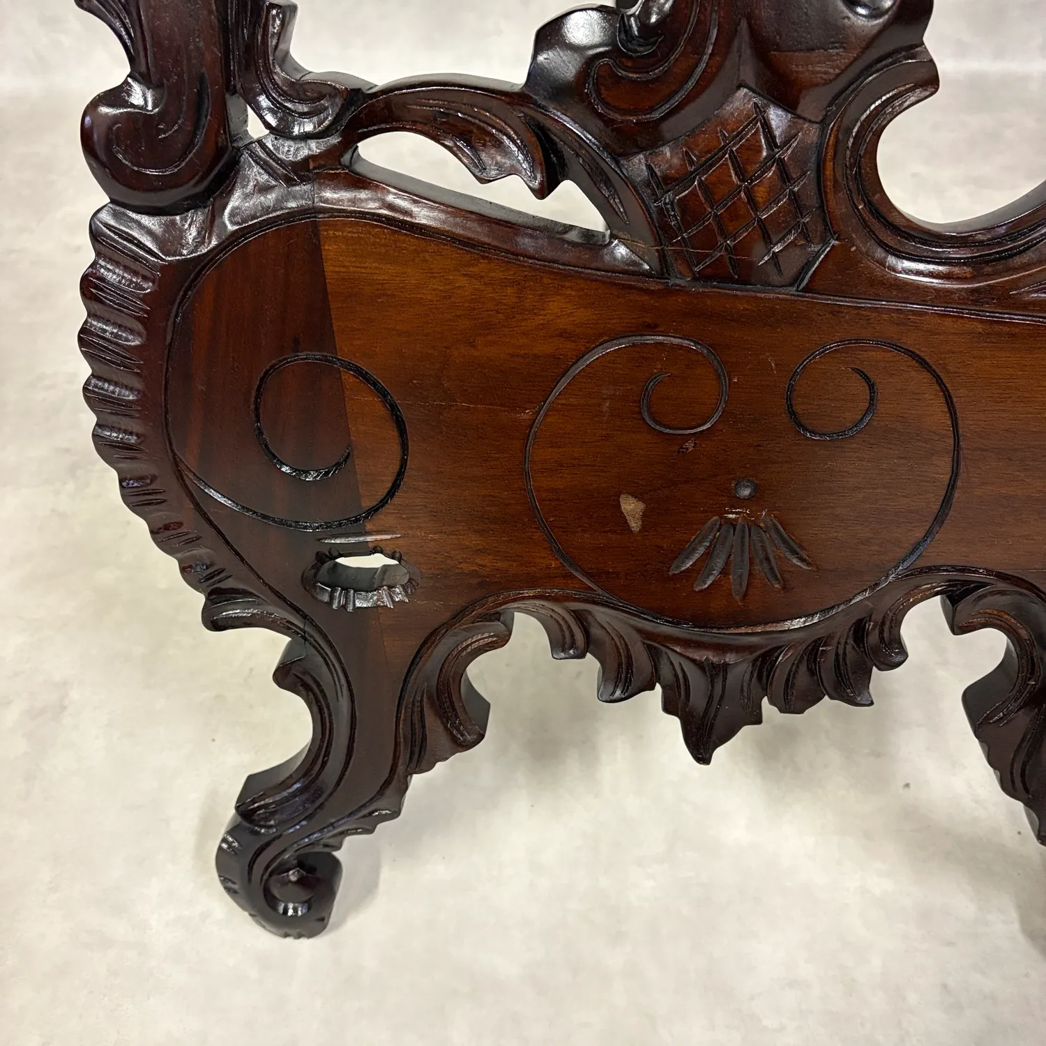 繊細に施された装飾と、マホガニー材特有の深みのある赤みが、格調高い雰囲気を演出します。