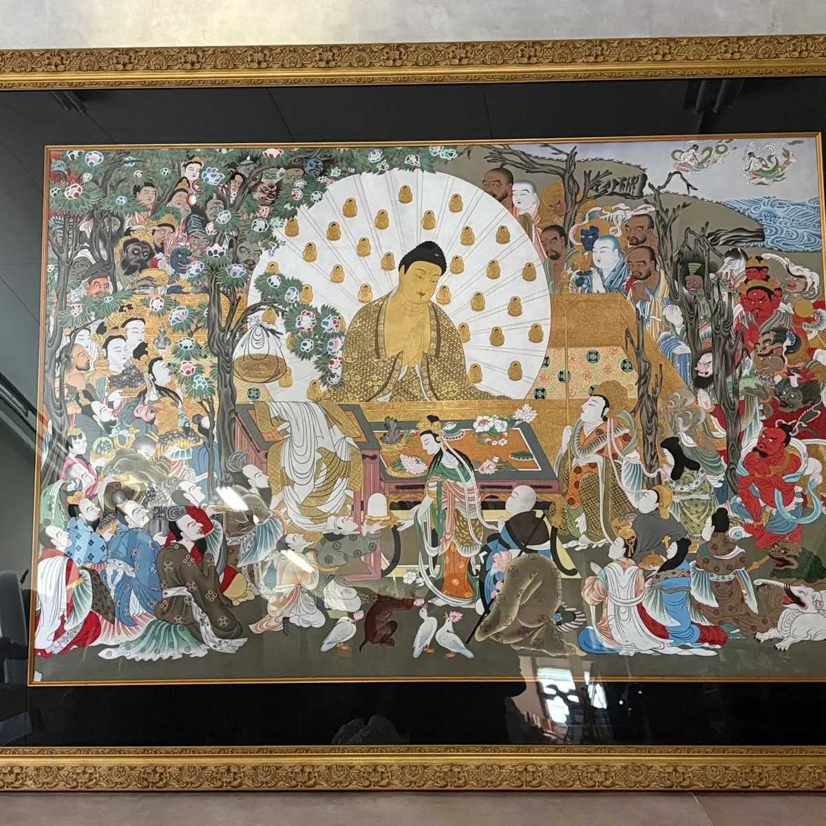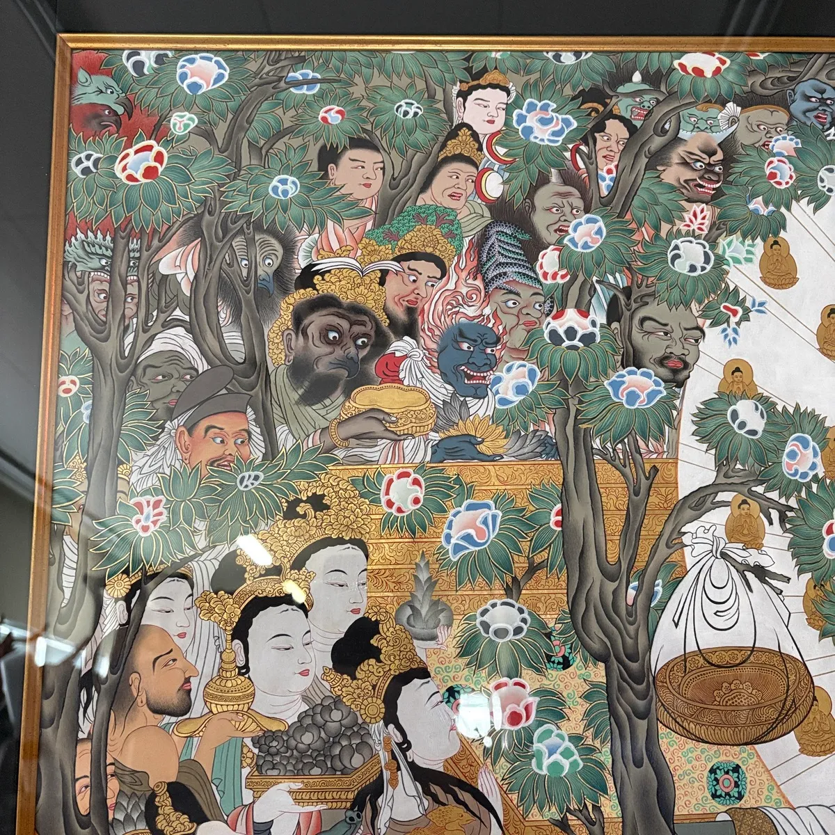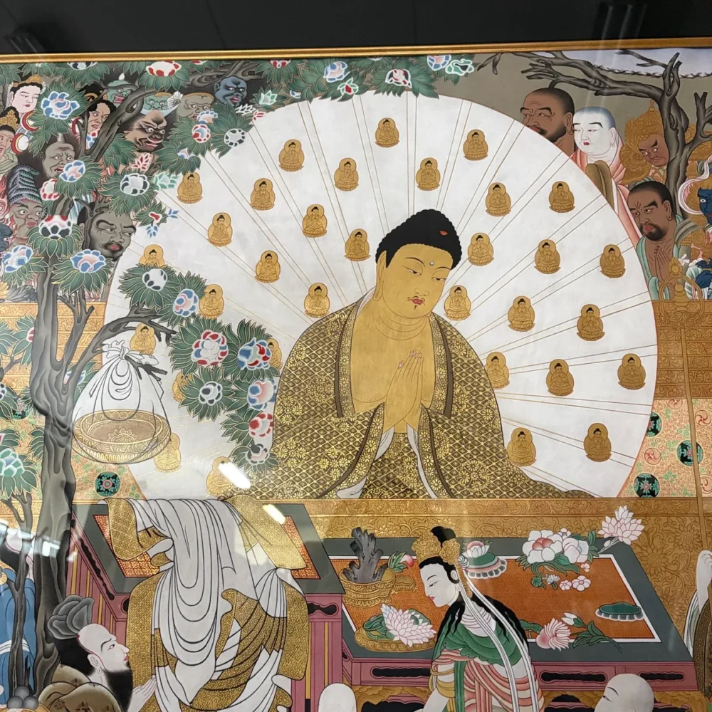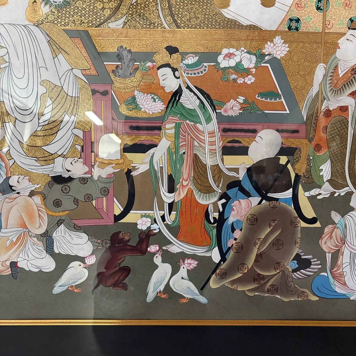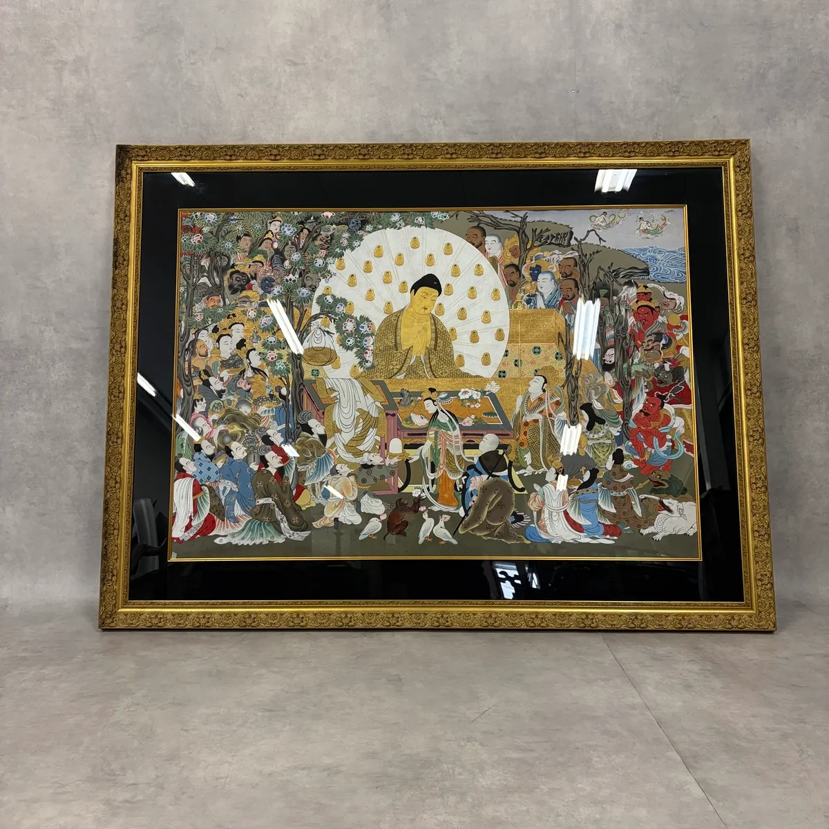 豪華な装飾の額に収められており、仏教美術やアジアンアートのコレクションとしてはもちろん、空間の象徴的な一点としても強い存在感を放ちます。