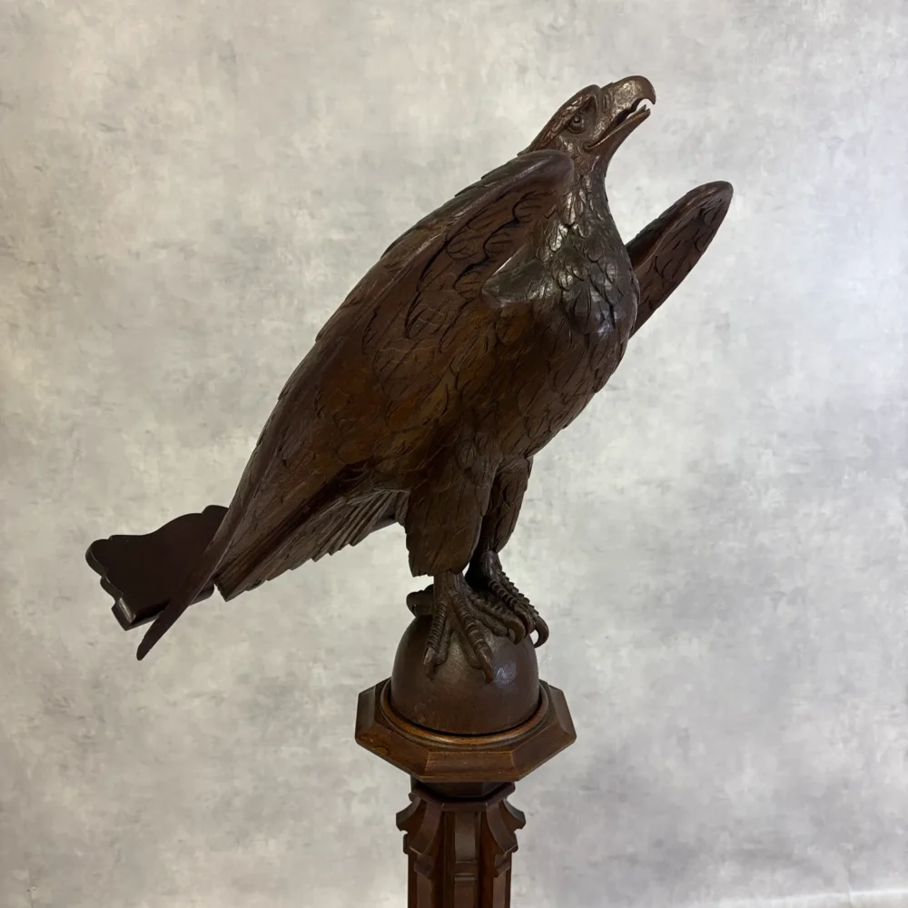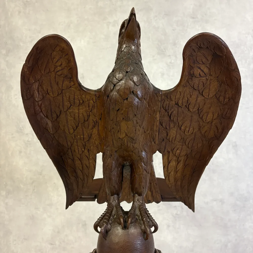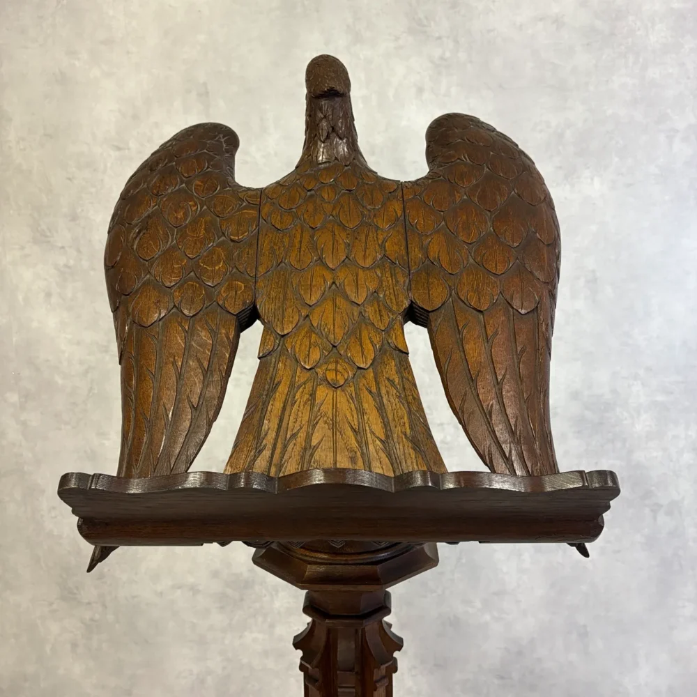 重厚な歴史を感じさせるアンティークの聖書台。威厳ある鷲(イーグル)の彫刻が施され、神聖な空間に気品と力強さを添えます。職人による細やかな装飾が施され、年月を経るごとに美しい風合いを増し、クラシックな魅力と荘厳な雰囲気を醸し出します。